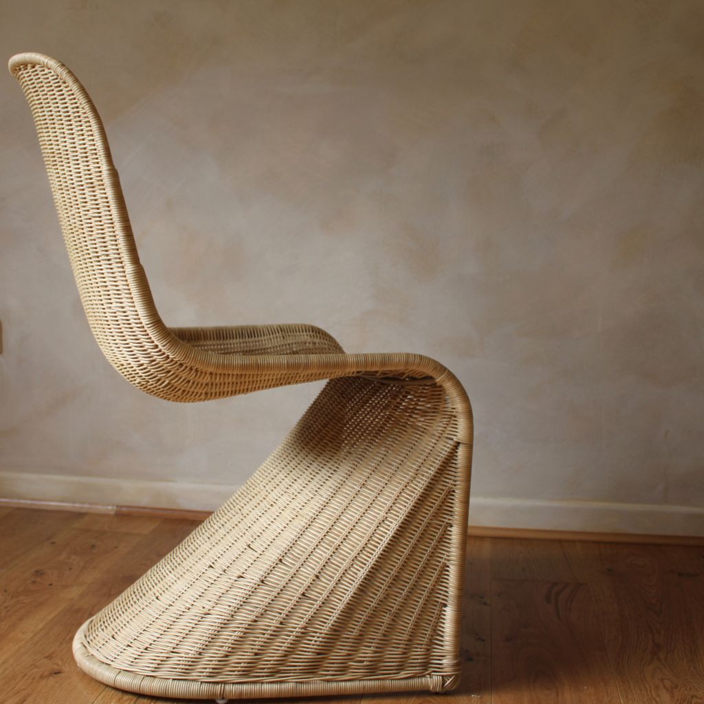 Bring timeless design and natural texture into your home with our Panton-inspired rattan dining chair. Featuring the iconic S-shaped silhouette of Verner Panton’s 1960s design classic, this chair combines mid-century modern style with the warmth of handwoven natural rattan.