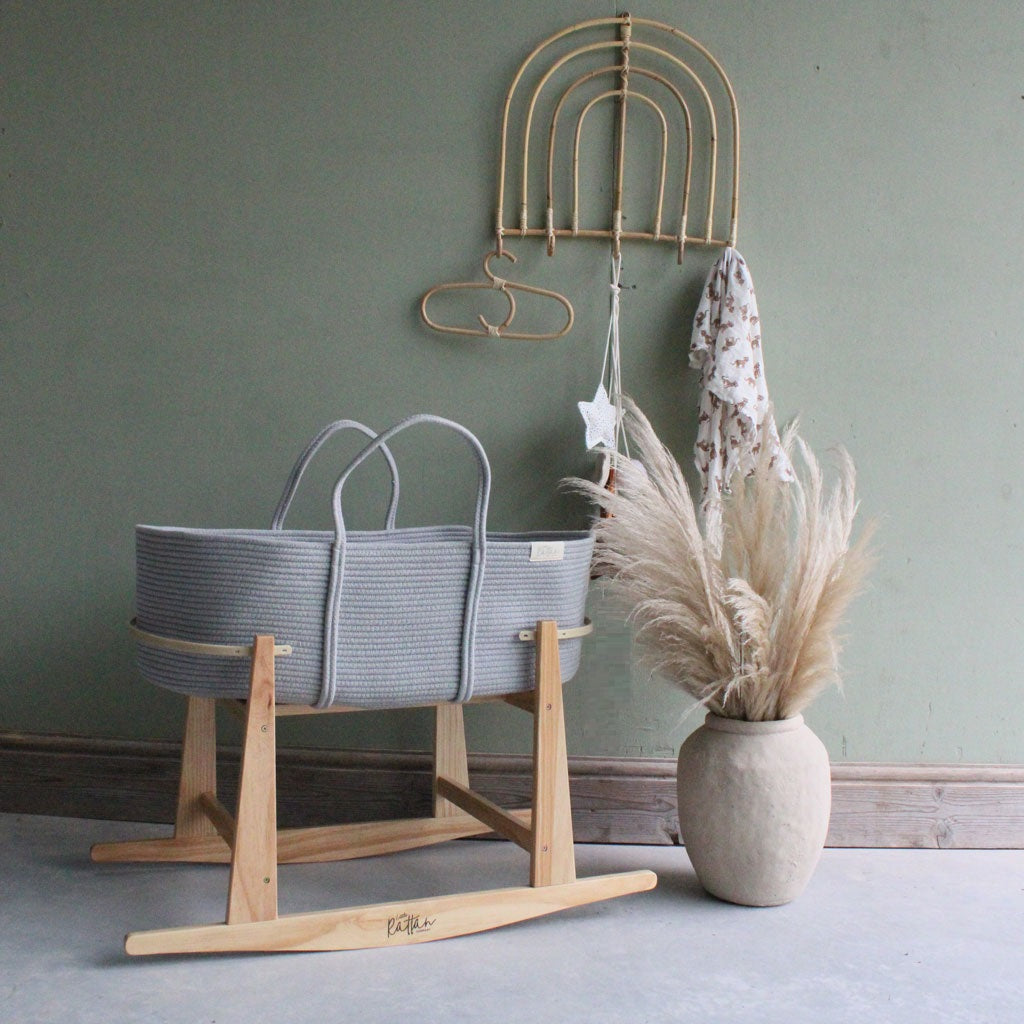 Soft Cotton Rope Baby Moses Basket with Mattress - Grey